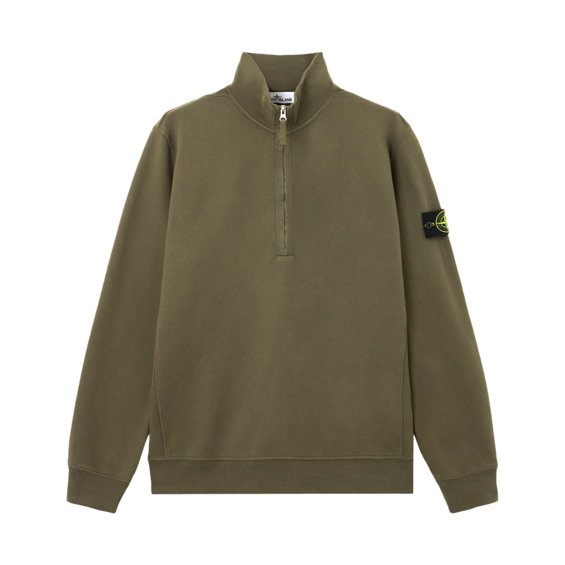 스톤 아일랜드 6100068 브러쉬드 오가닉 코튼 플리스 레귤러 핏 하프집 스웨트셔츠 립드 인레이 밀리터리 그린 - 25FW