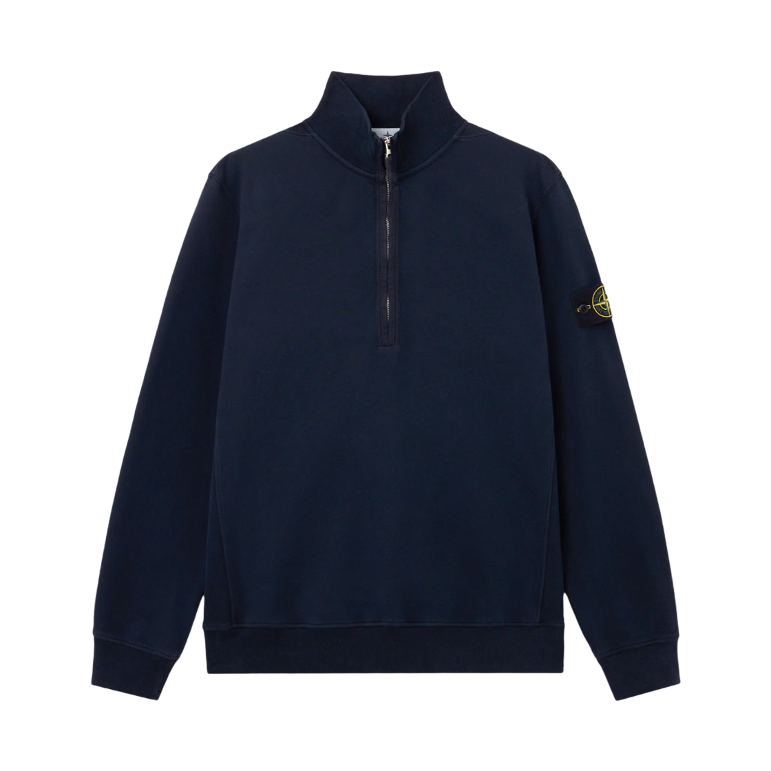 스톤 아일랜드 6100068 브러쉬드 오가닉 코튼 플리스 레귤러 핏 하프집 스웨트셔츠 립드 인레이 네이비 블루 - 25FW