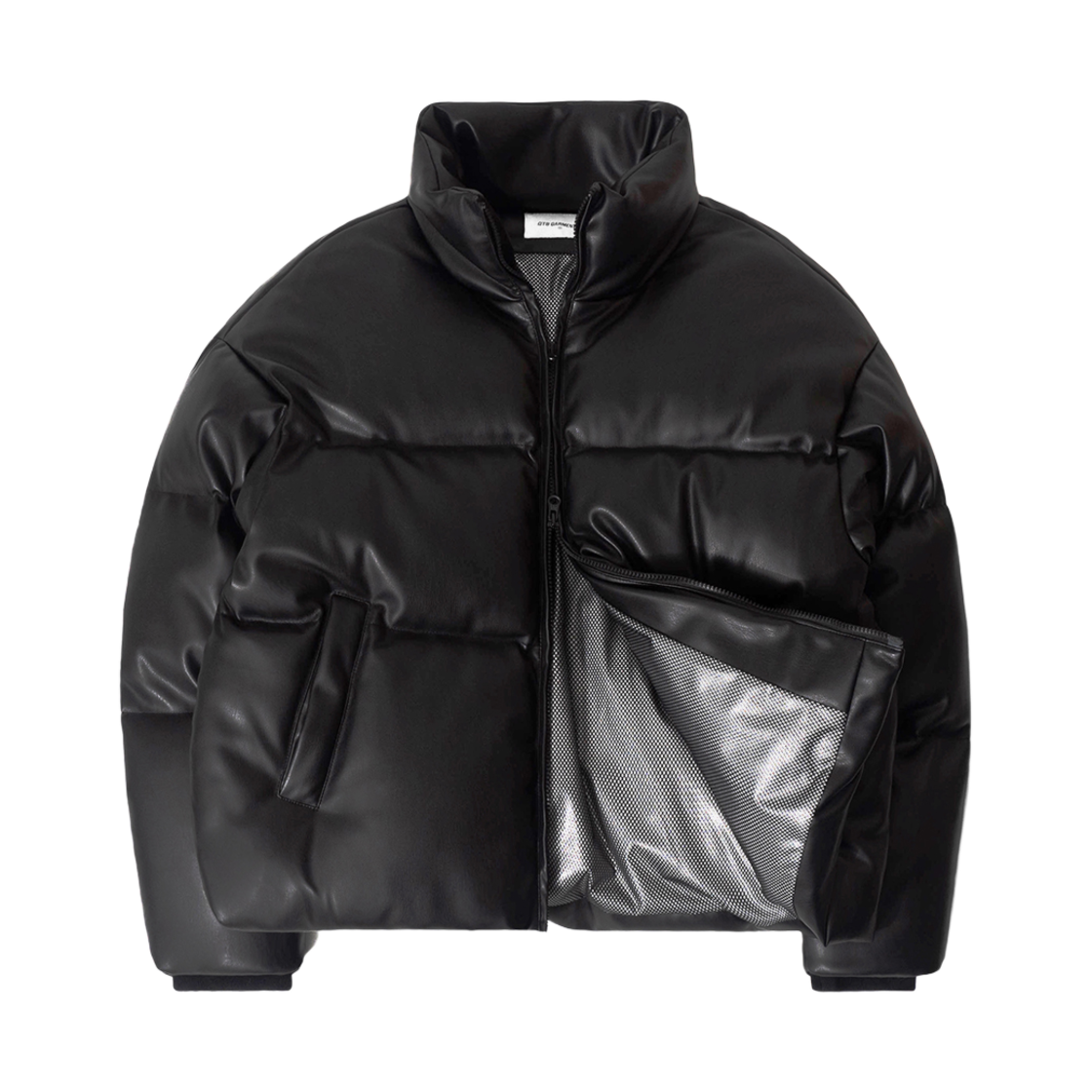 큐티에잇 가먼츠 신세틱 레더 덕 다운 숏 패딩 블랙