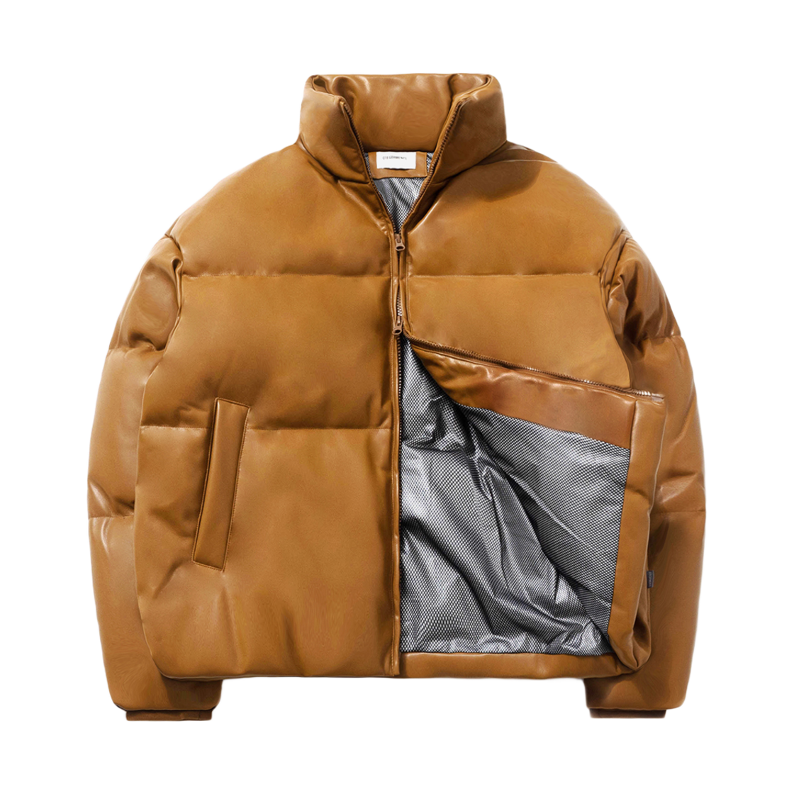큐티에잇 가먼츠 신세틱 레더 덕 다운 숏 패딩 브라운