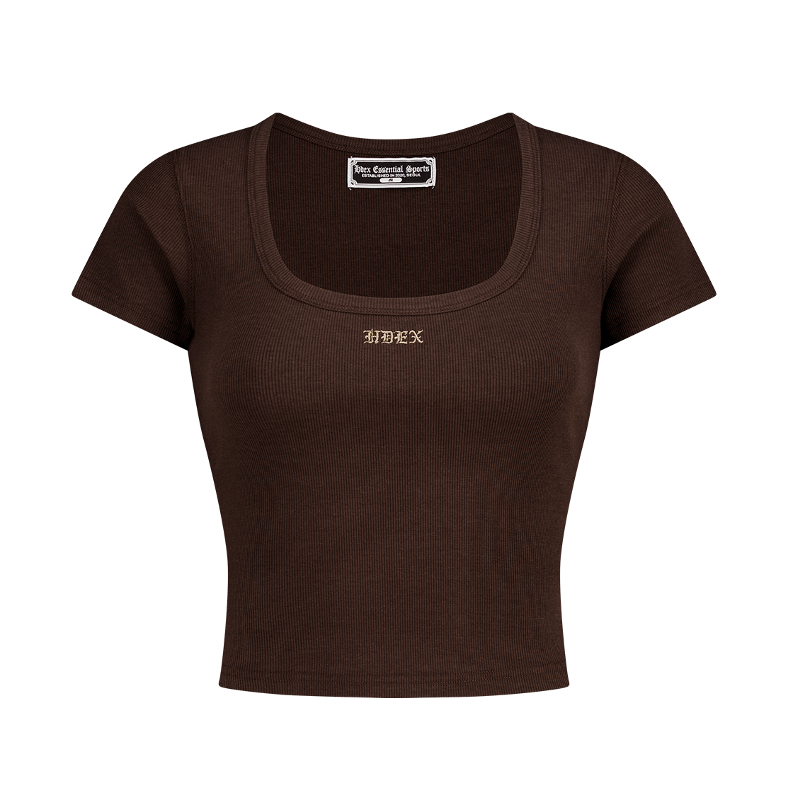 에이치덱스 에센셜 리브드 딥 넥 숏 슬리브 Brown