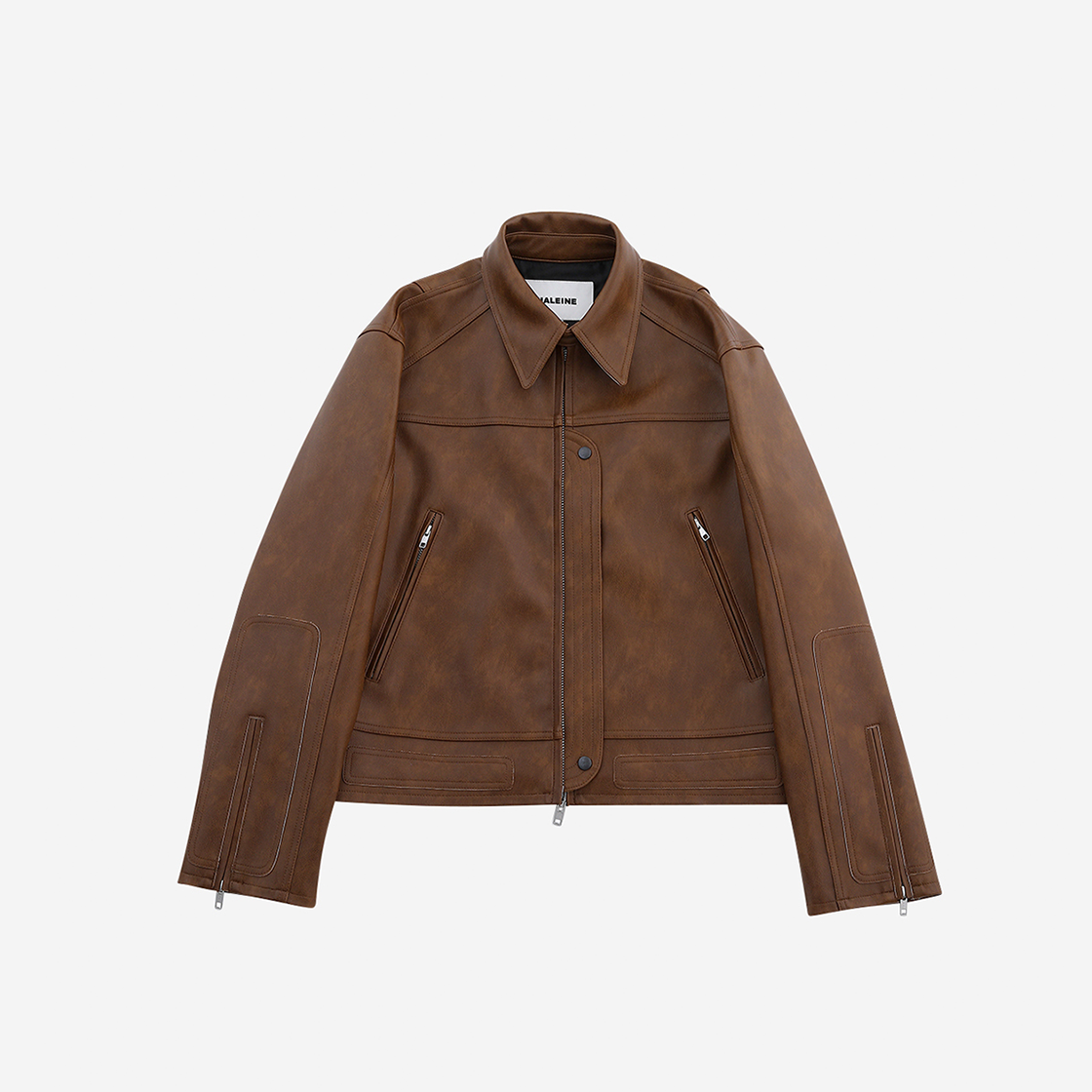 [KREAM 단독] 알렌느 패치드 3D 포우 레더 레이싱 자켓 브라운
