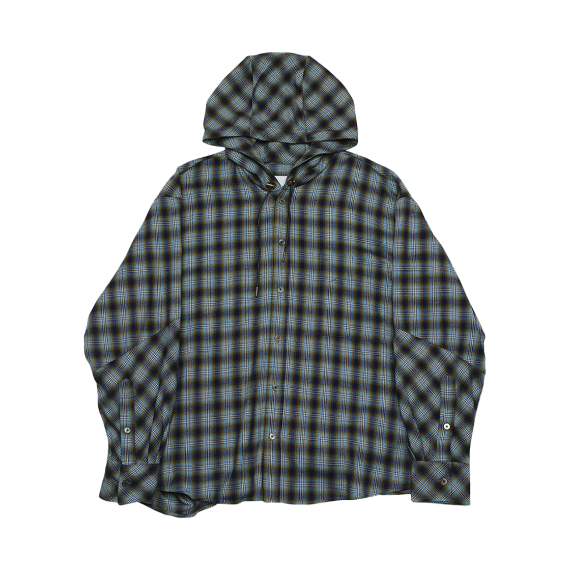 [KREAM 단독] 알렌느 백 사이드 2 플리츠 디테일 체크 후드 셔츠 블루