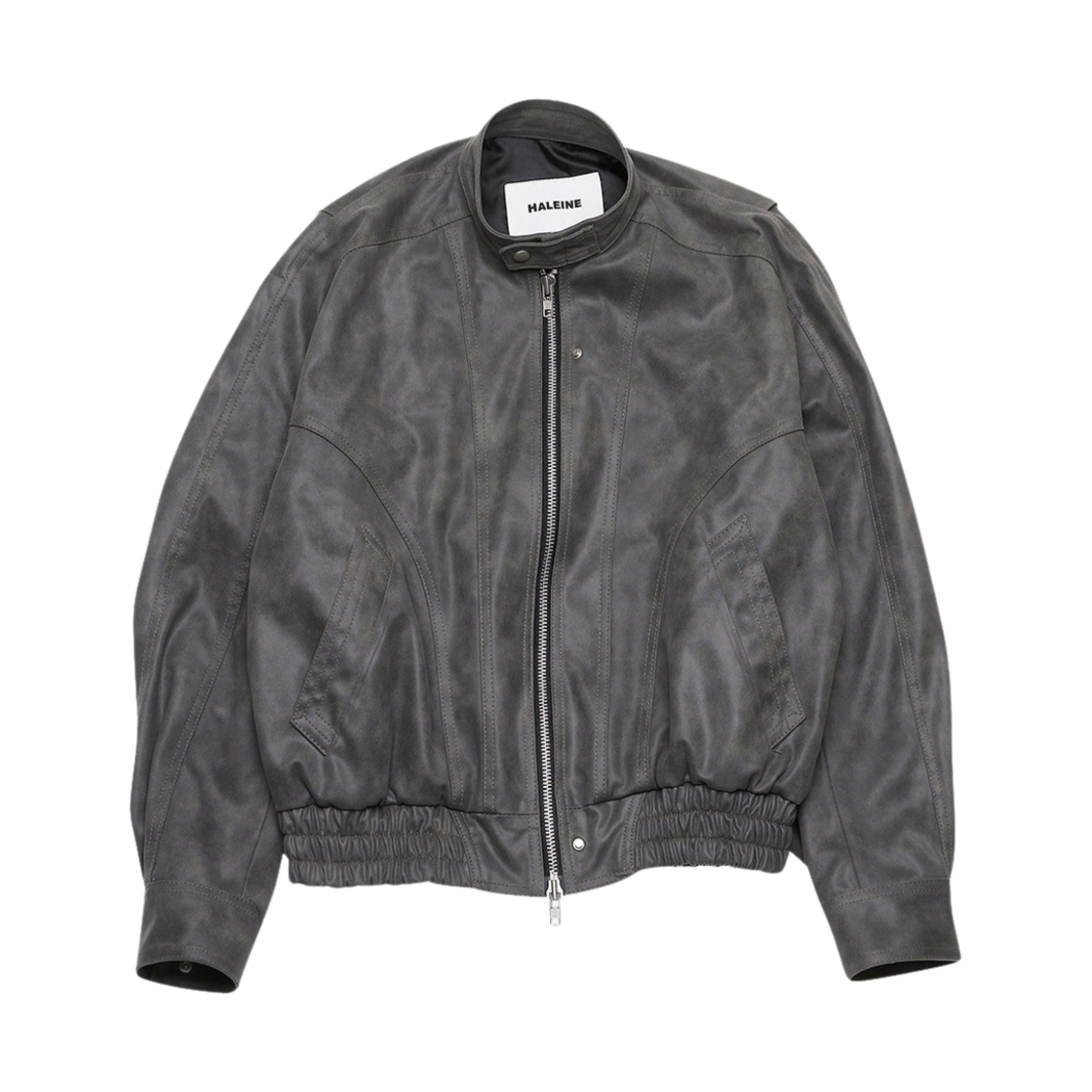 알렌느 바이커 디테일 스크랩 포우 레더 3D 블루종 그레이