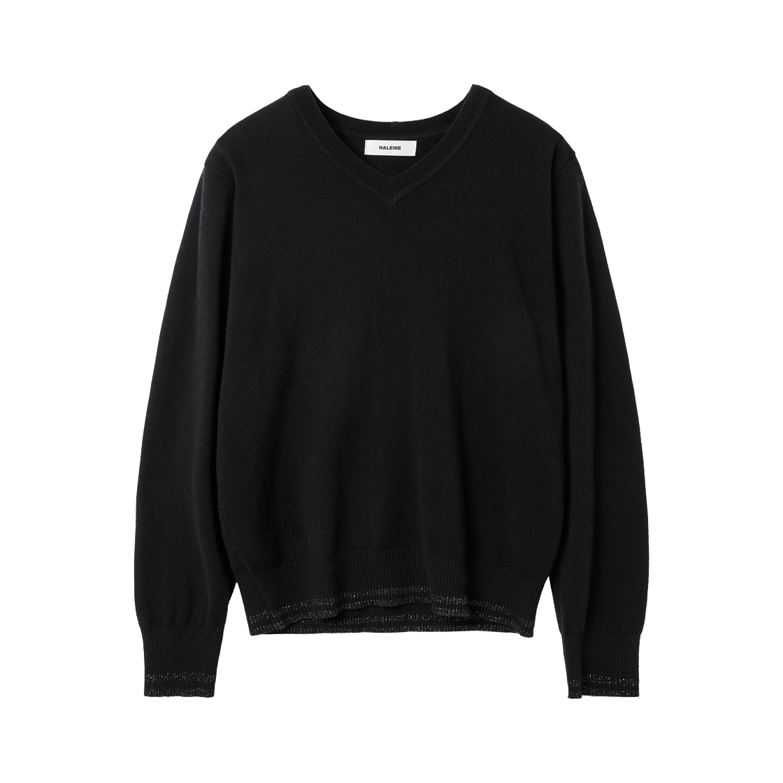 알렌느 메탈릭 트림 브이넥 니트 블랙