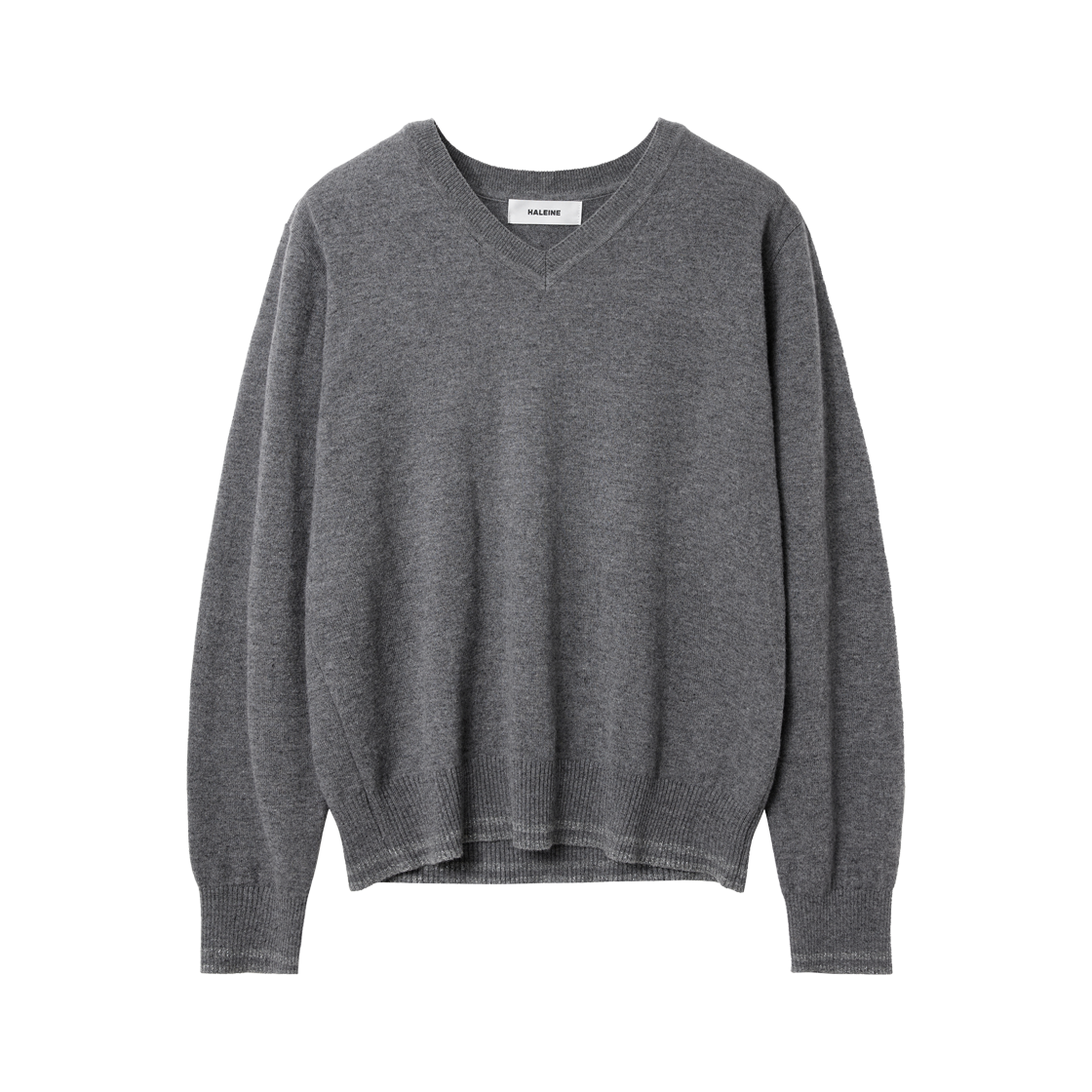 알렌느 메탈릭 트림 브이넥 니트 그레이