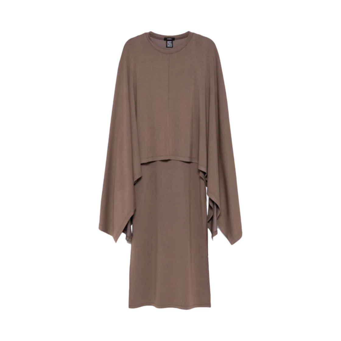고엔제이 골지 U넥 케이프 슬리블리스 드레스 브라운