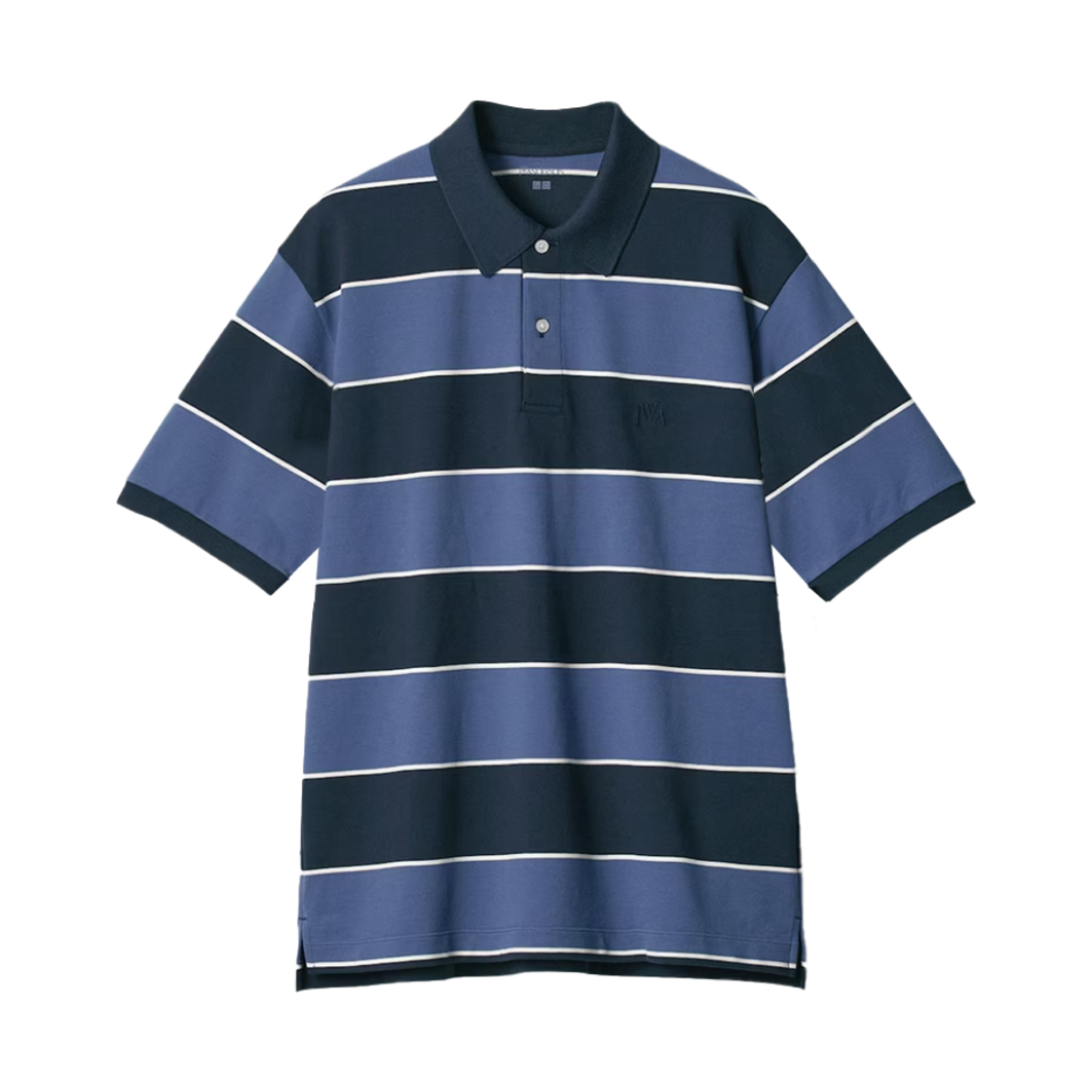 유니클로 x JW 앤더슨 드라이 피케 스트라이프 폴로 셔츠 레귤러 네이비 - KR