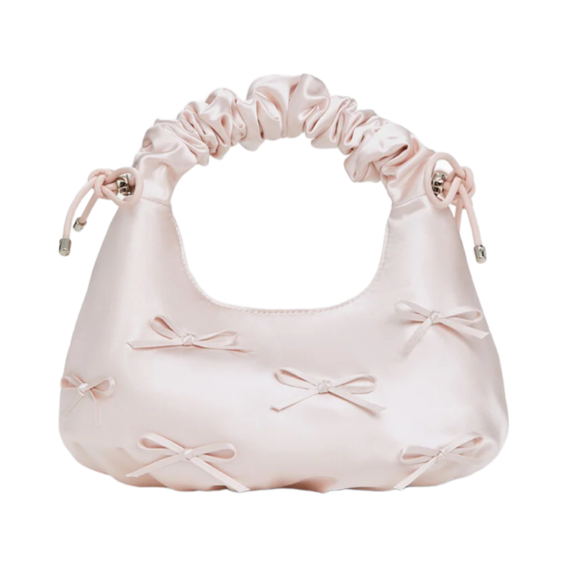 찰스앤키스 새틴 보우 러치드 핸들 백 베이비 핑크