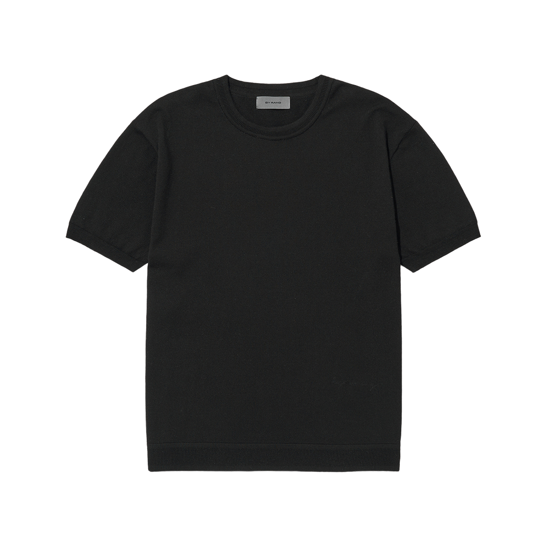 바이랑 코튼 실크 로고 니트 크루넥 블랙