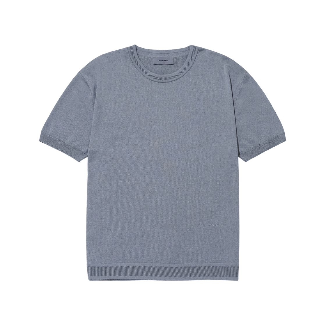 바이랑 코튼 실크 로고 니트 크루넥 미스티 블루