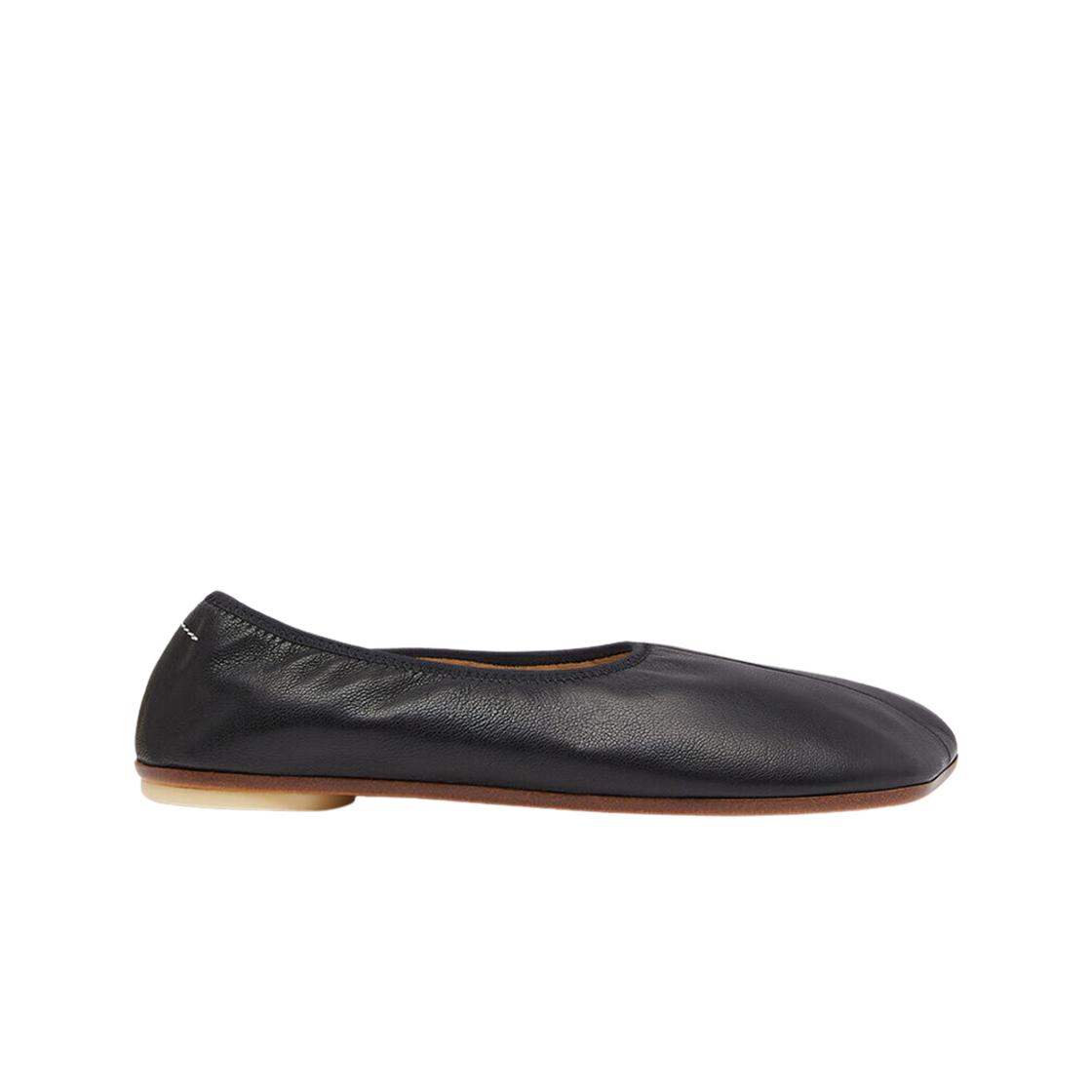 (W) MM6 메종 마르지엘라 스티치 아웃 레더 발레리나 블랙