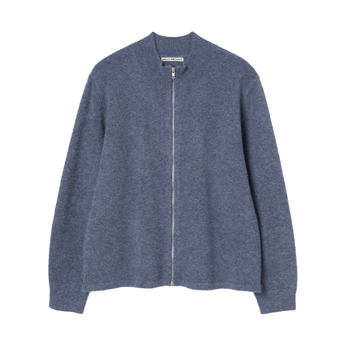 밀로 아카이브 크롭 헤어리 니트 집업 인디고 블루