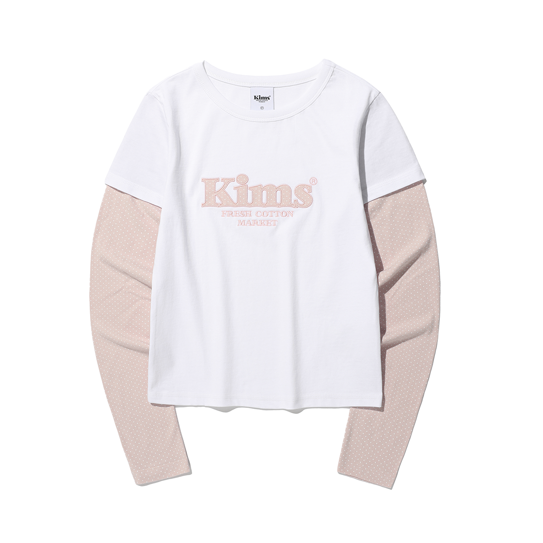 킴스프레시코튼마켓 미니 도트 슬리브 롱슬리브 긴팔티셔츠 화이트(핑크)