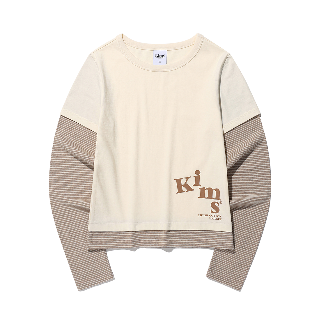 킴스프레시코튼마켓 뮤즈 스트라이프 레이어드 롱슬리브 긴팔티셔츠 크림