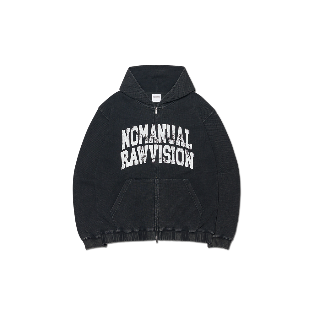 노매뉴얼 빈티지 와플 후디드 집업 워시드 블랙