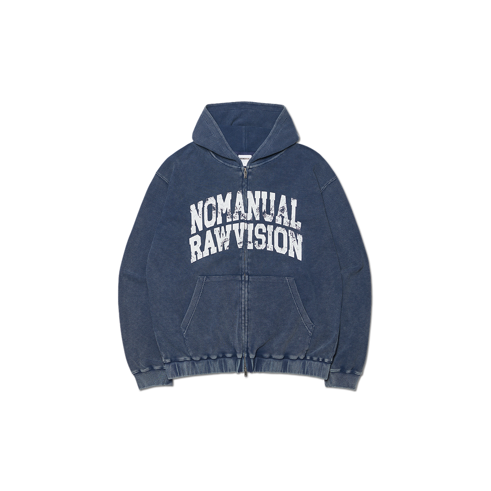 노매뉴얼 빈티지 와플 후디드 집업 워시드 네이비