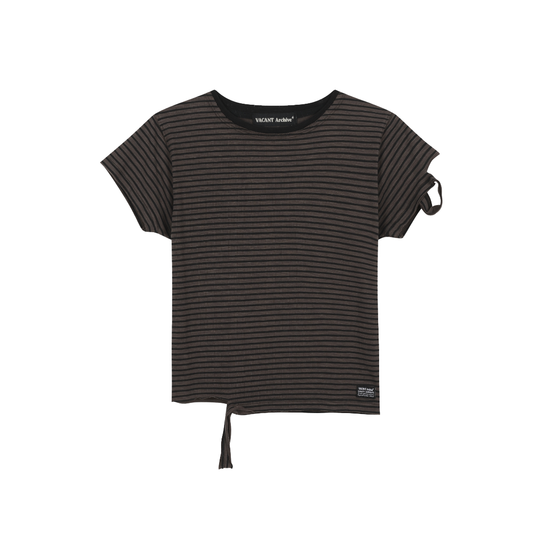 베이컨트 아카이브 오반 대미지드 스트라이프 티셔츠 브라운