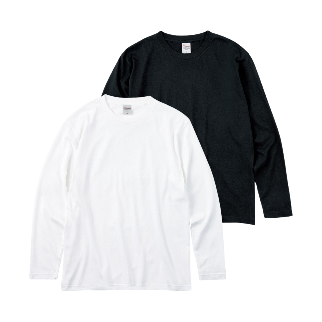 프린트스타 베이직 라운드 롱슬리브 티셔츠 화이트 블랙 (2팩)