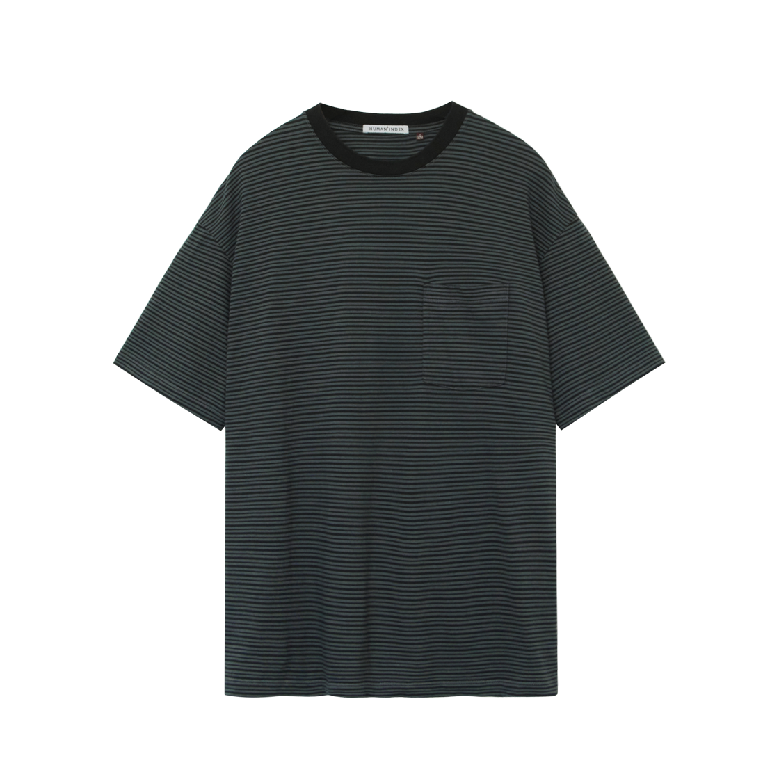 (W) 폴리테루 휴먼인덱스 휴먼 스트라이프 포켓 1/2 티셔츠 그린