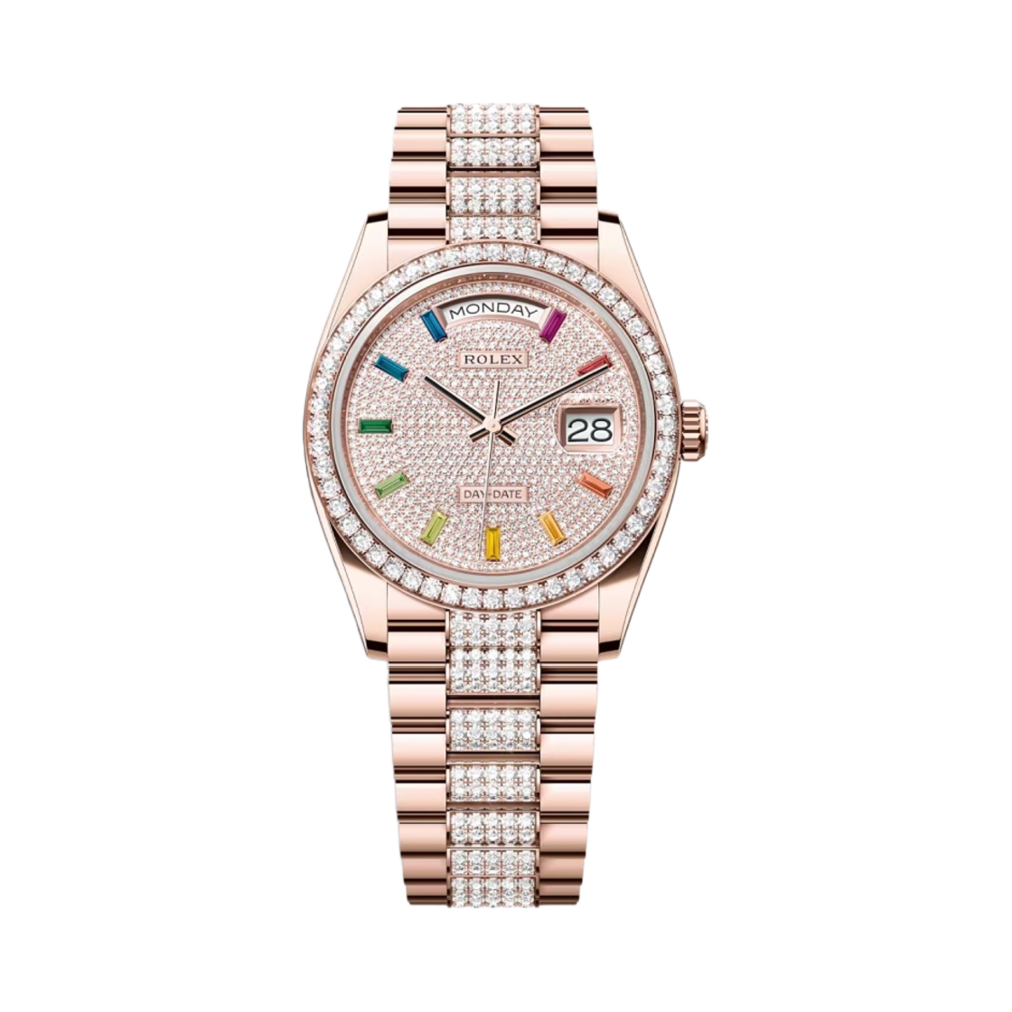 롤렉스 데이데이트 36mm 128345RBR 파베 다이아 셋팅 다이아 셋팅 프레지던트