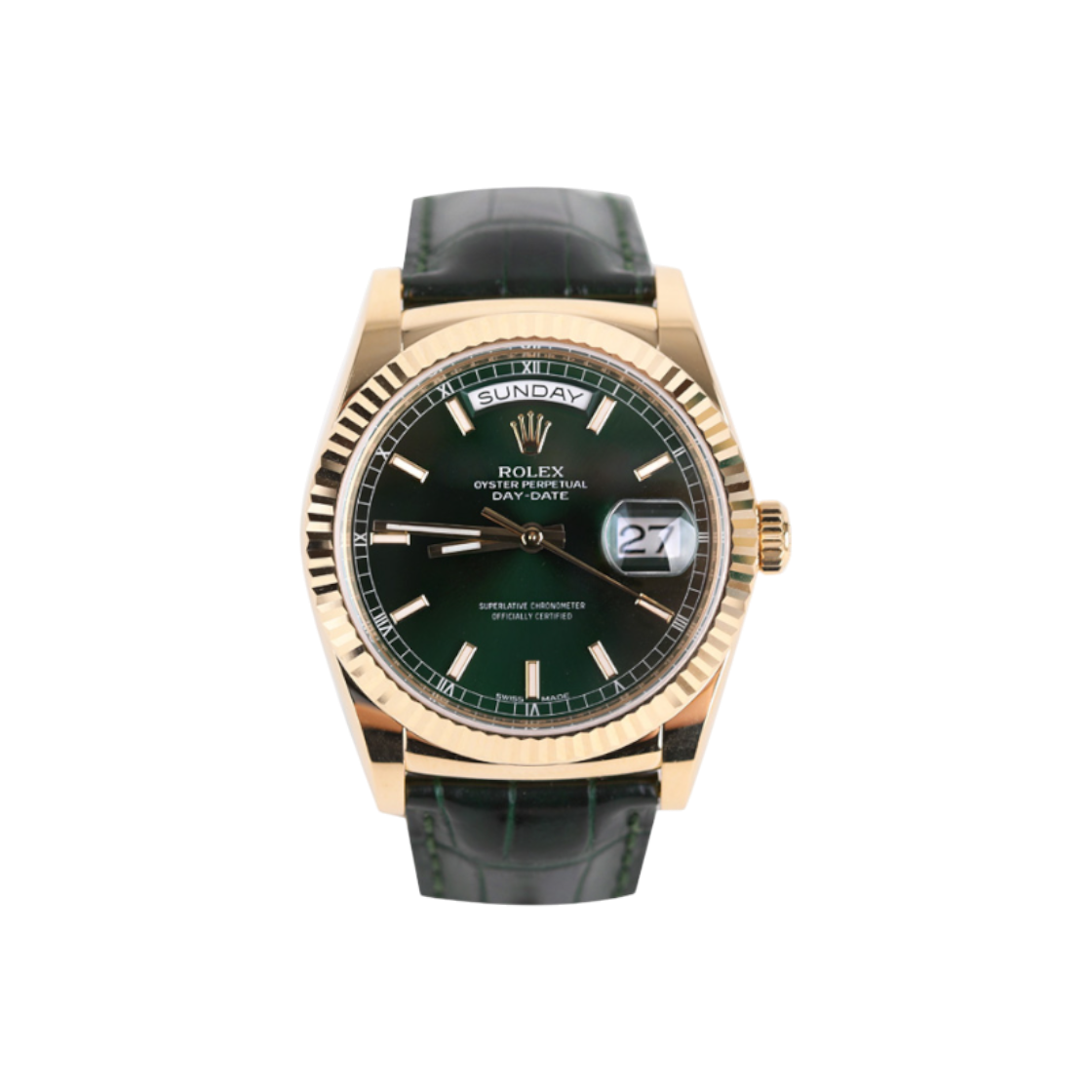 롤렉스 118138 데이데이트 금통 그린 인덱스 디버클 가죽밴드 36mm