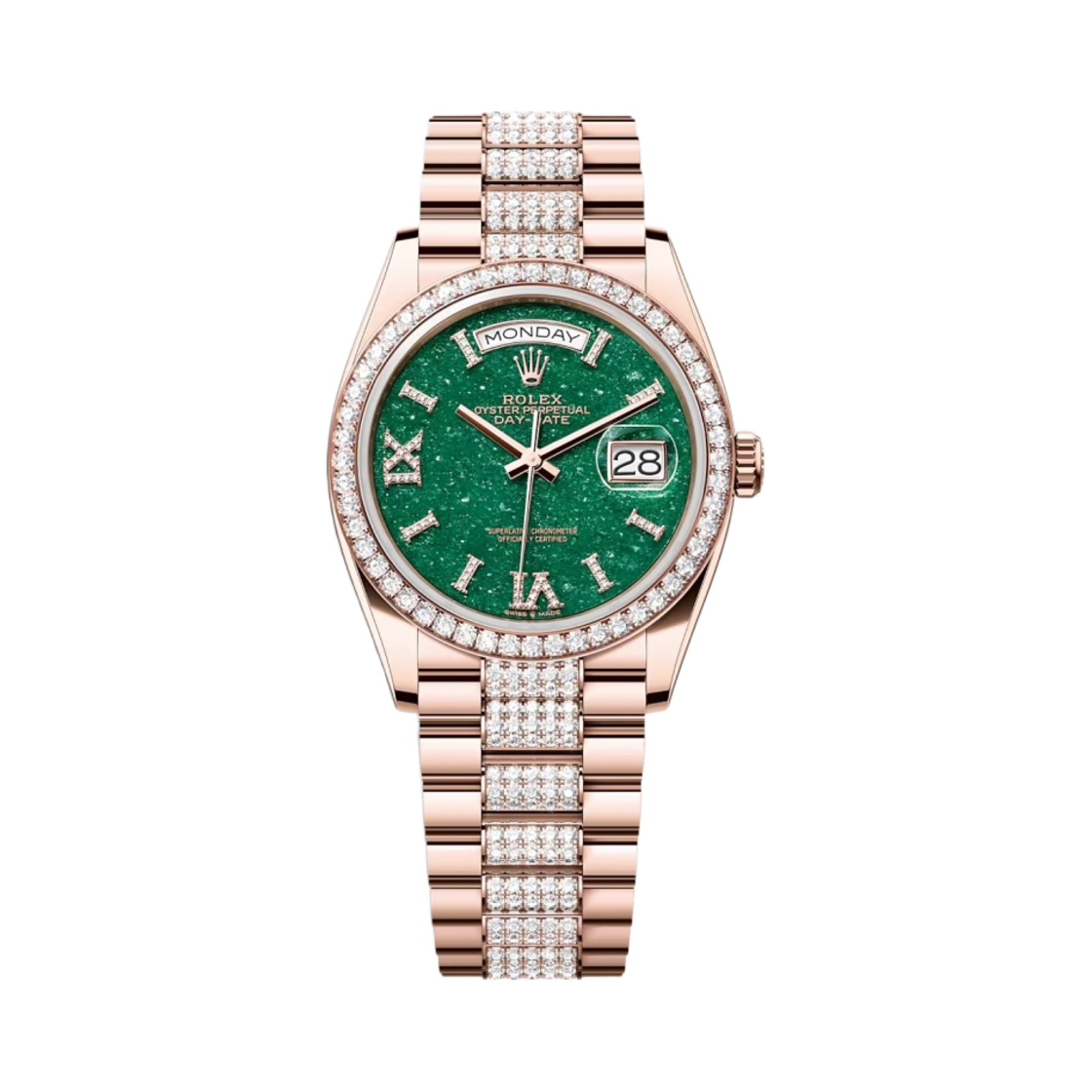 롤렉스 데이데이트 36mm 128345RBR 그린 어벤추린 로만 다이아 셋팅 다이아 셋팅 프레지던트