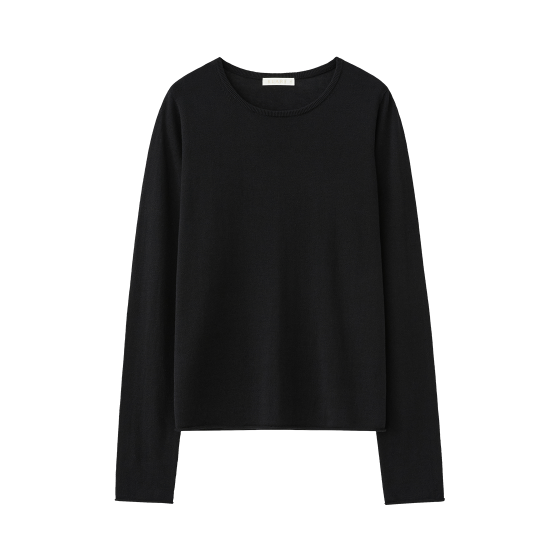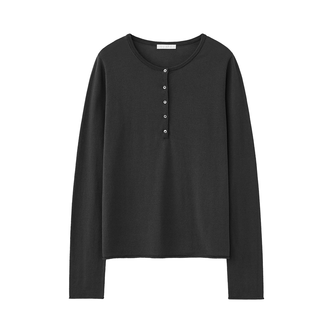 (W) 수아레 우먼 코튼 모달 헨리넥 슬리브 니트 블랙