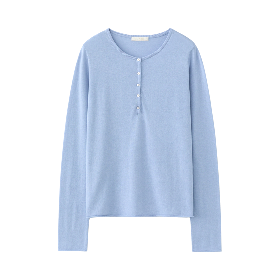 (W) 수아레 우먼 코튼 모달 헨리넥 슬리브 니트 스카이 블루