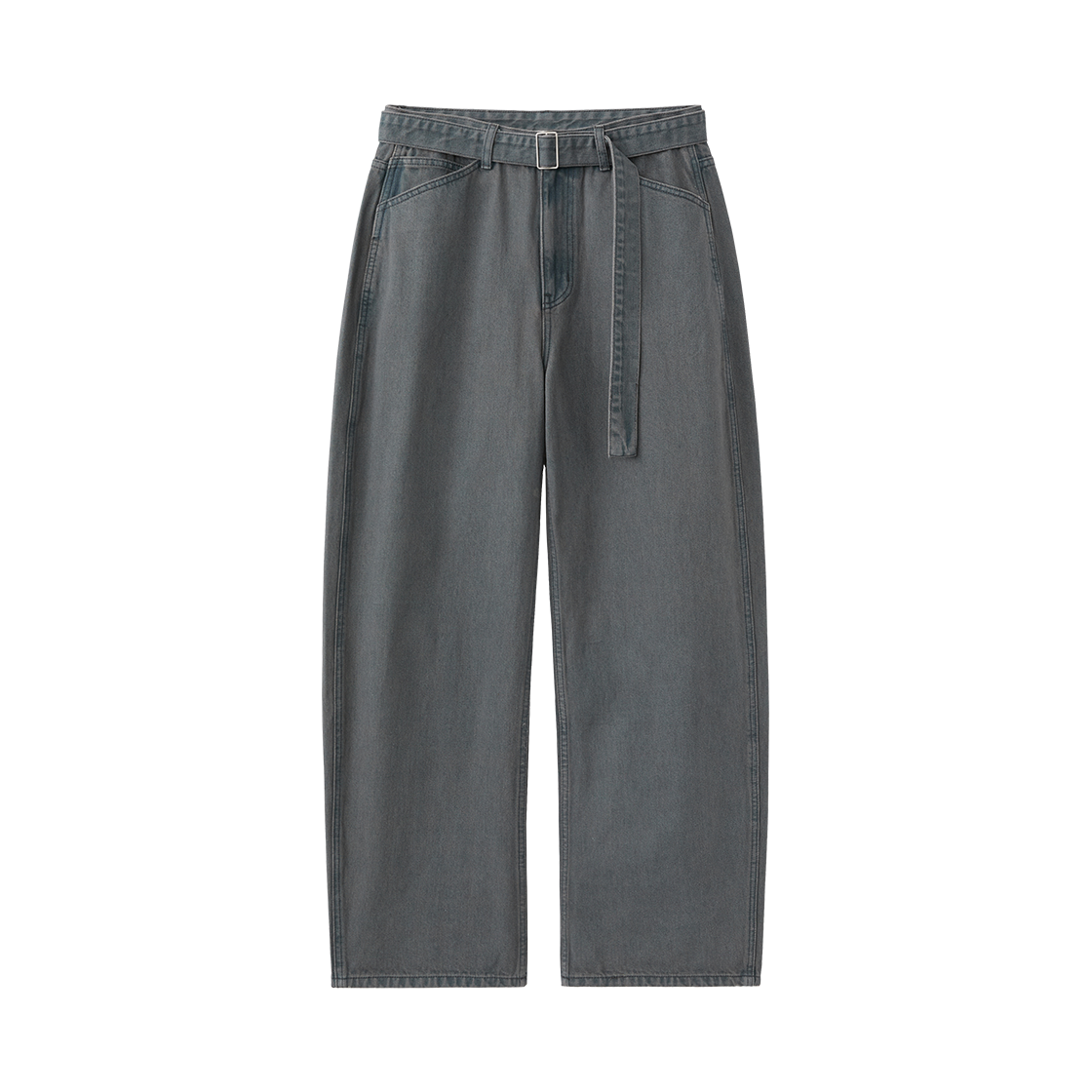 (W) 수아레 우먼 벨티드 워싱 커브드 팬츠 블루 그레이