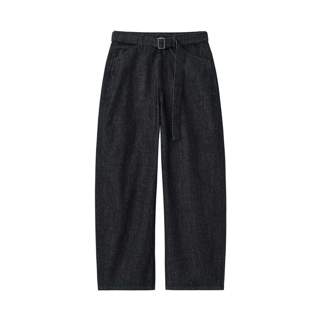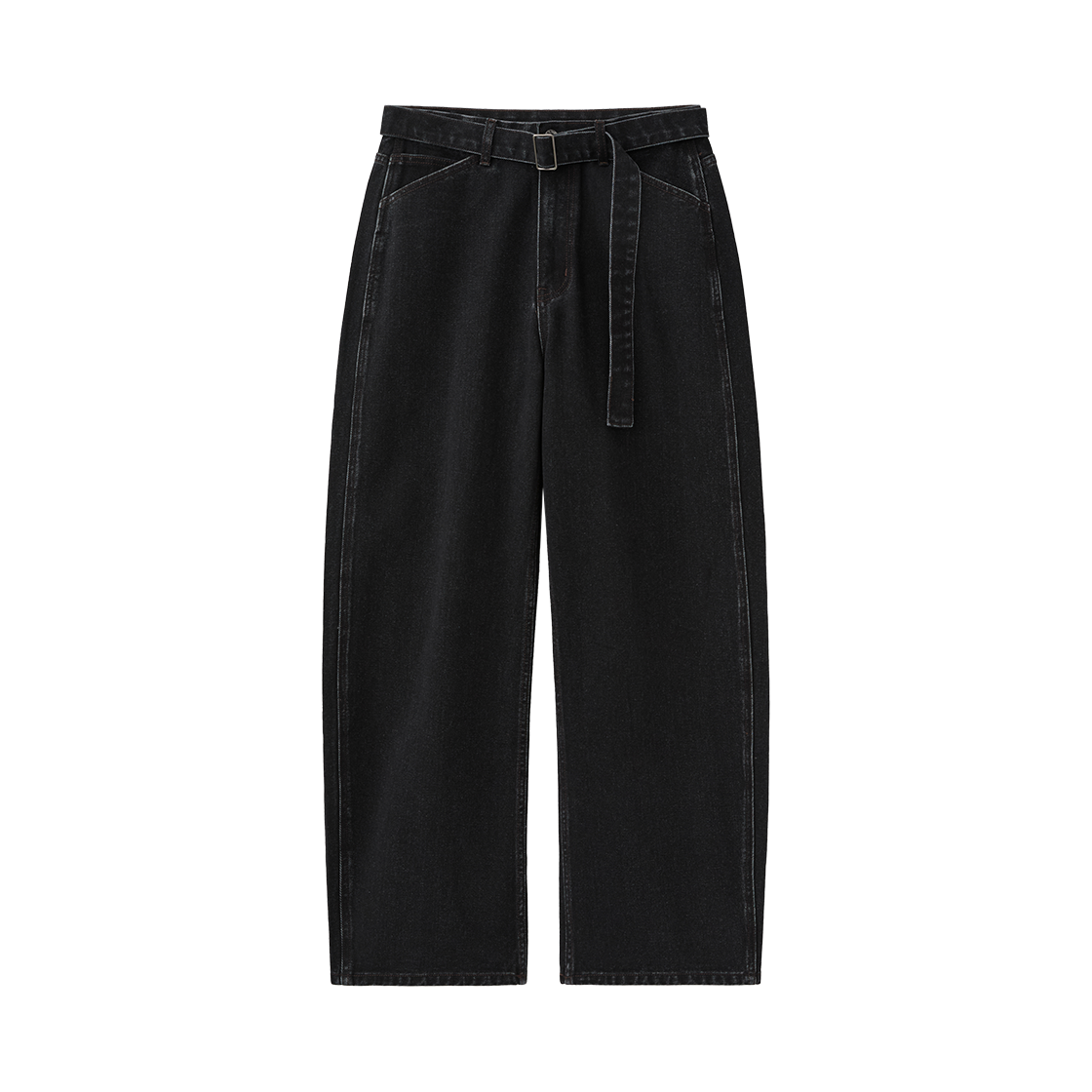 (W) 수아레 우먼 벨티드 워싱 커브드 팬츠 블랙