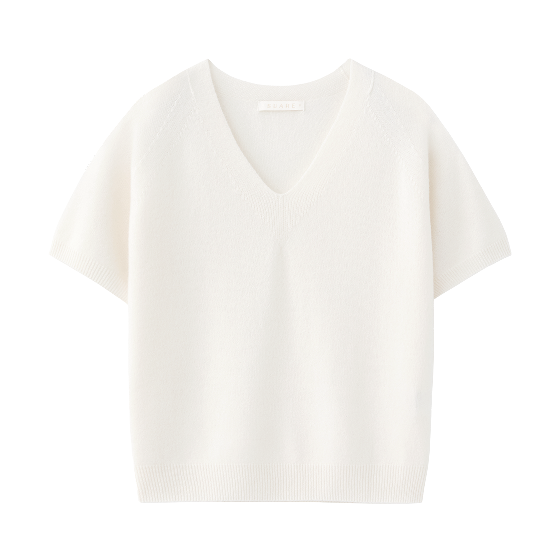 (W) 수아레 우먼 캐시10 울90 홀가 브이넥 하프 니트 아이보리