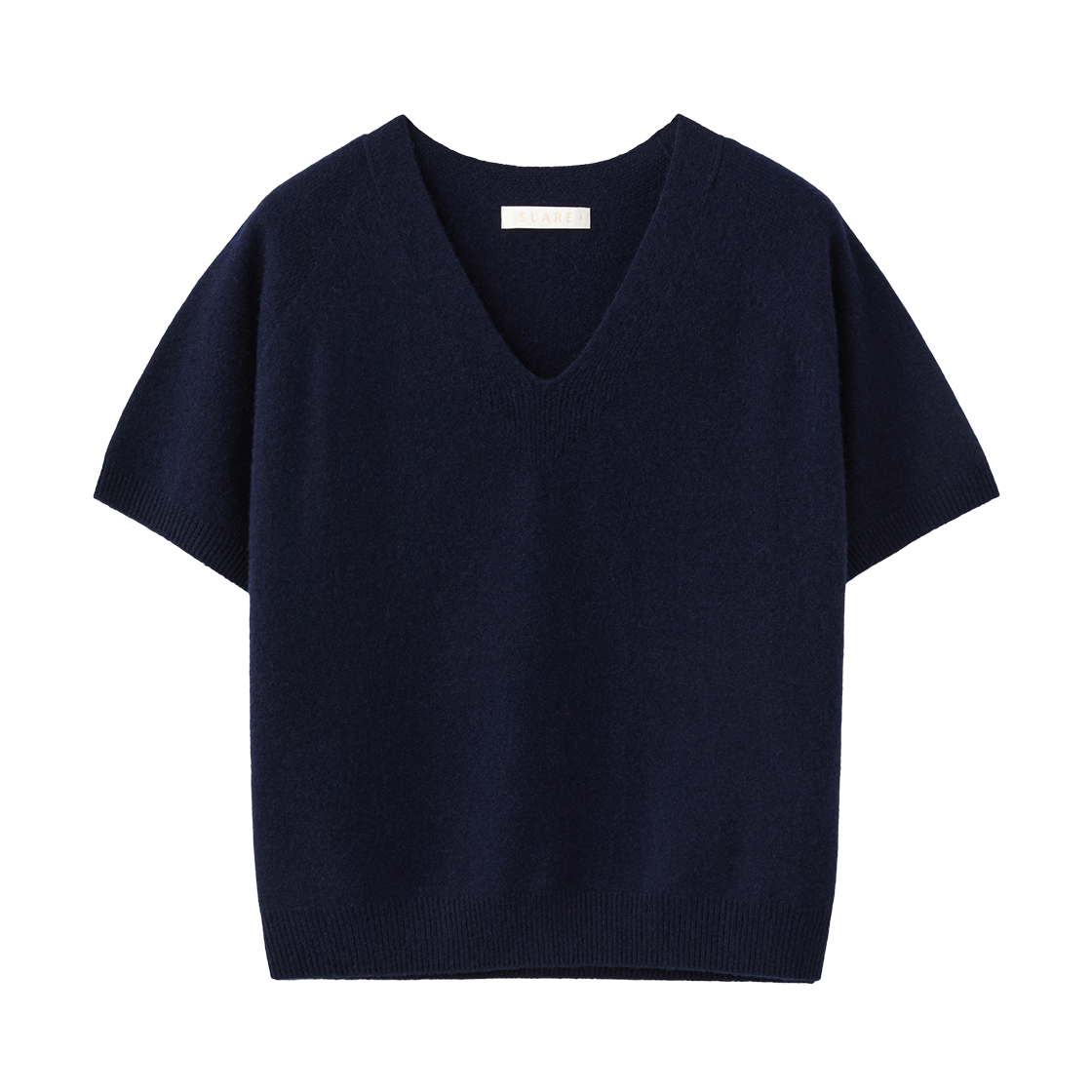 (W) 수아레 우먼 캐시10 울90 홀가 브이넥 하프 니트 네이비