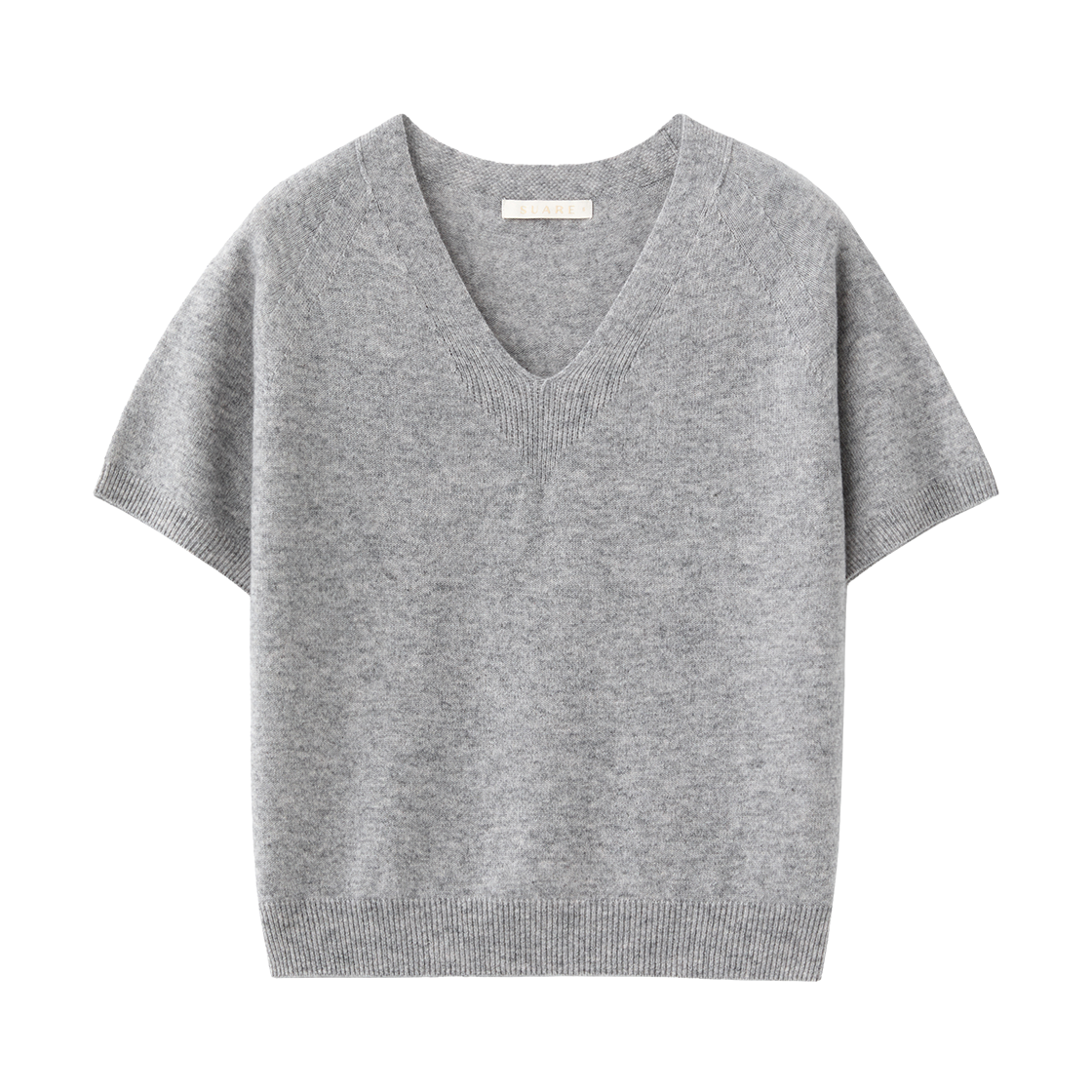 (W) 수아레 우먼 캐시10 울90 홀가 브이넥 하프 니트 멜란지