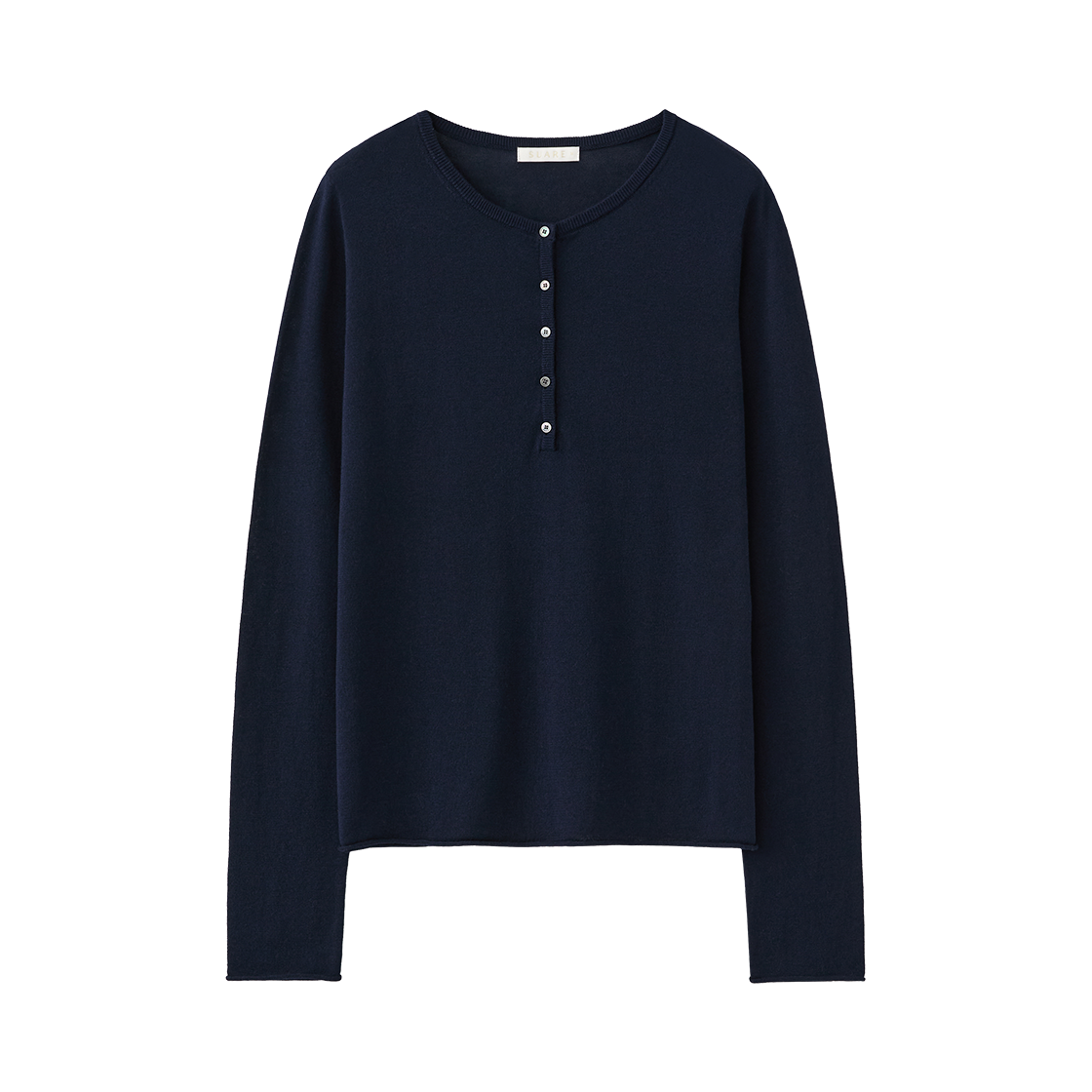 (W) 수아레 우먼 코튼 모달 헨리넥 슬리브 니트 네이비