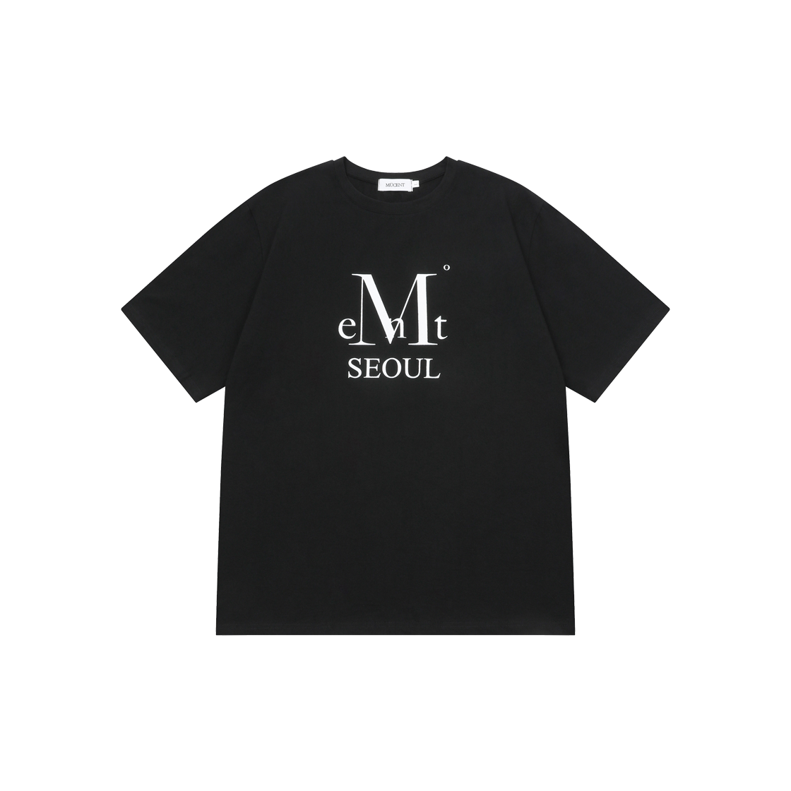 무센트 센터리 서울 레터링 라운드넥 반팔 티 남녀공용 블랙