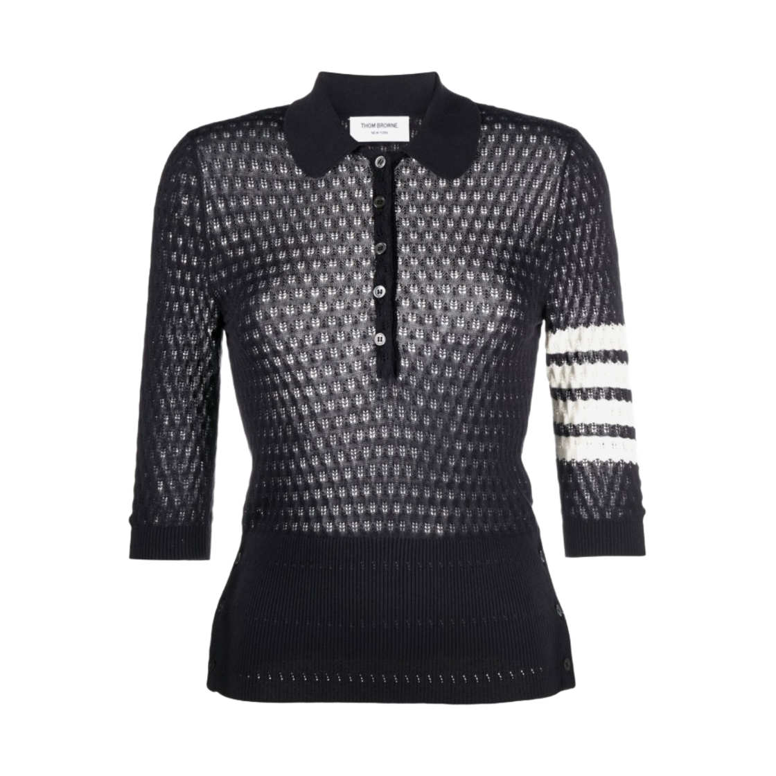 (W) 톰브라운 코튼 실크 포인텔 사선 폴로 네이비