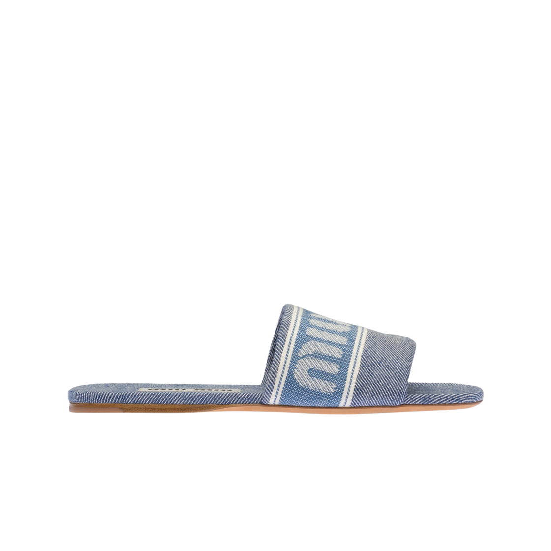(W) 미우 미우 자카드 데님 샌들 뮬 블루에뜨