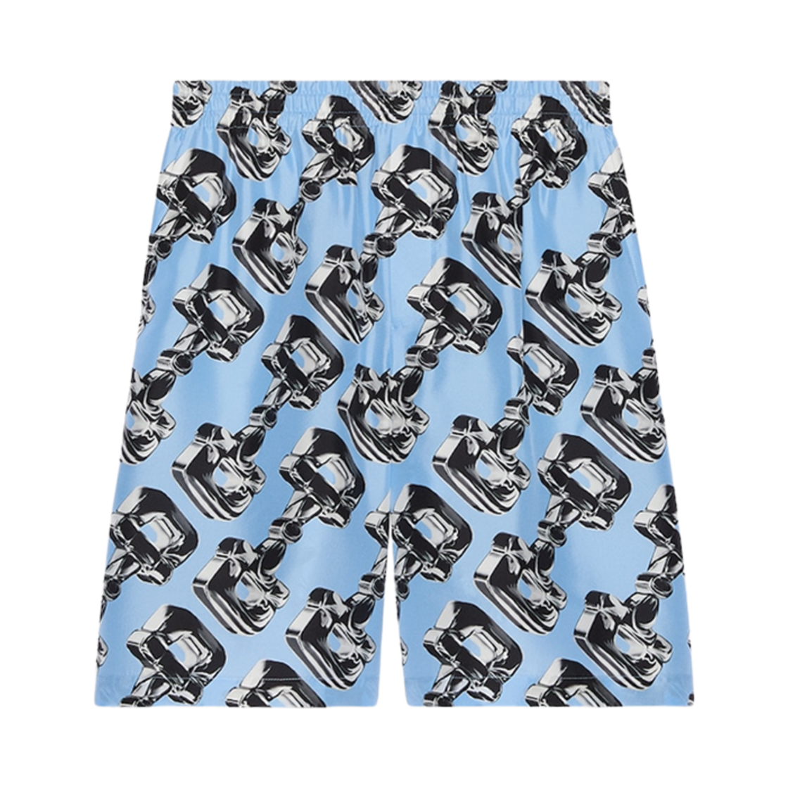 구찌 3D 글래스 홀스빗 프린트 실크 쇼츠 라이트 블루 그레이