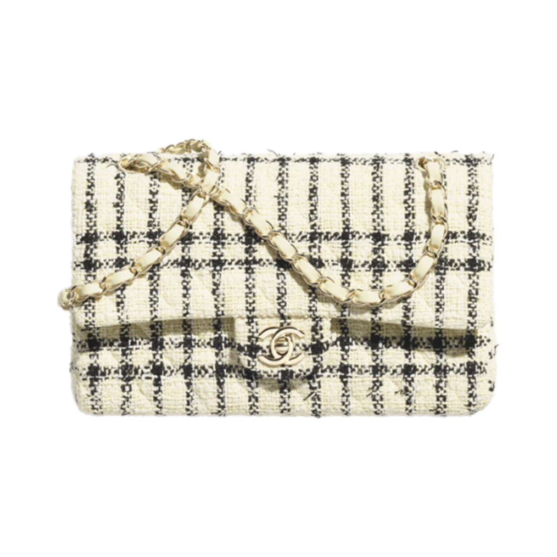 샤넬 클래식 11.12 핸드백 트위드 & 골드 메탈 라이트 옐로우 블랙