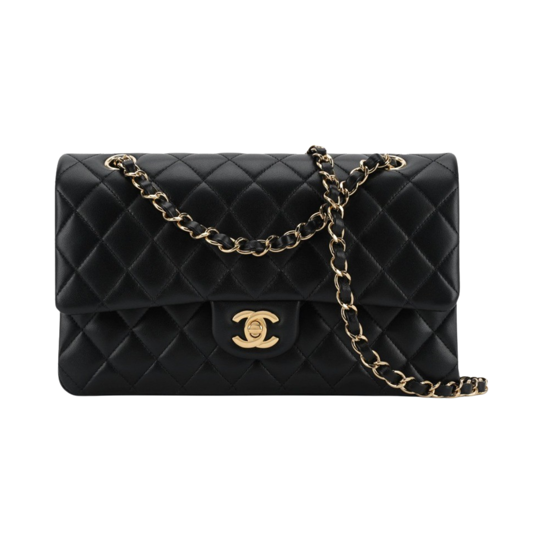 샤넬 클래식 미디움 플랩백 램스킨 & 골드 메탈 블랙