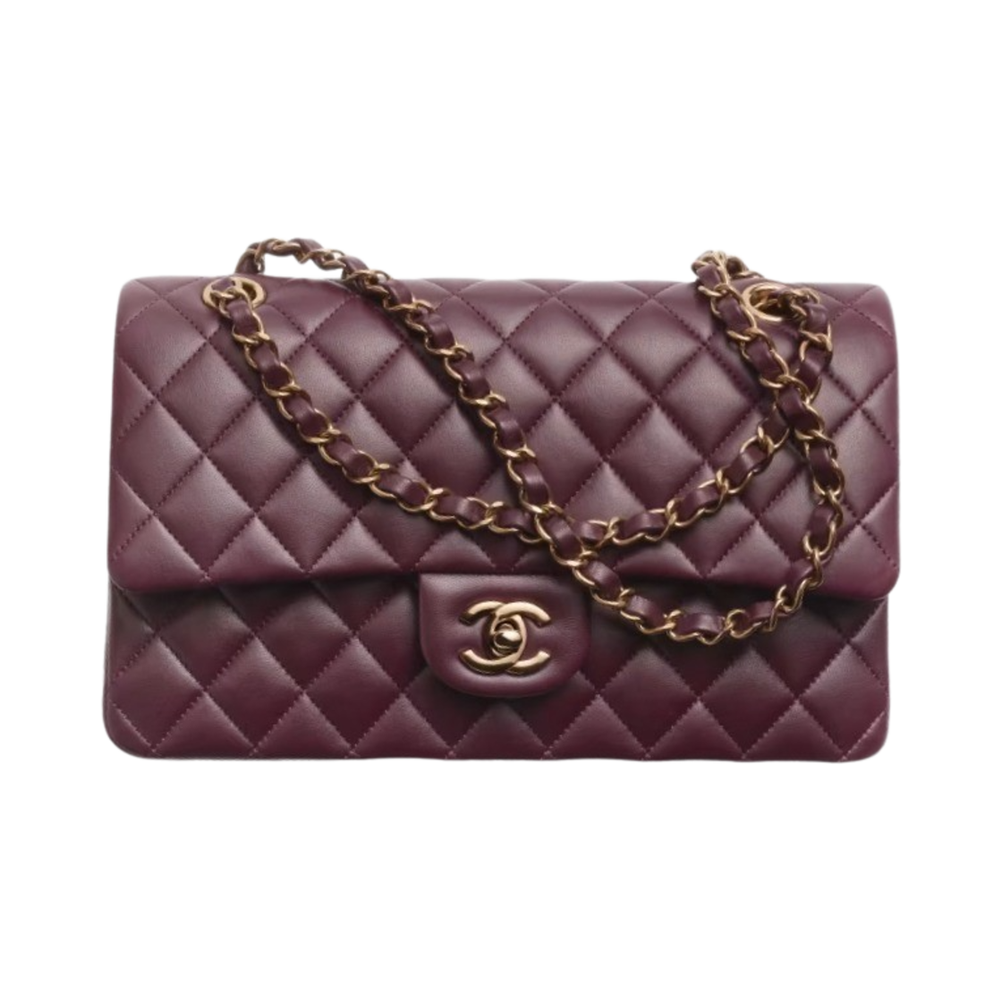 샤넬 클래식 11.12 핸드백 그레인드 샤이니 램스킨 & 골드 메탈 버건디