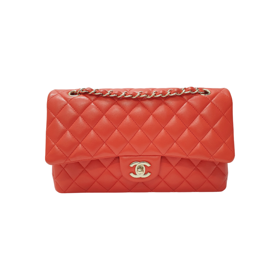 샤넬 A01112 램스킨 레드 금장 클래식 미듐 숄더백