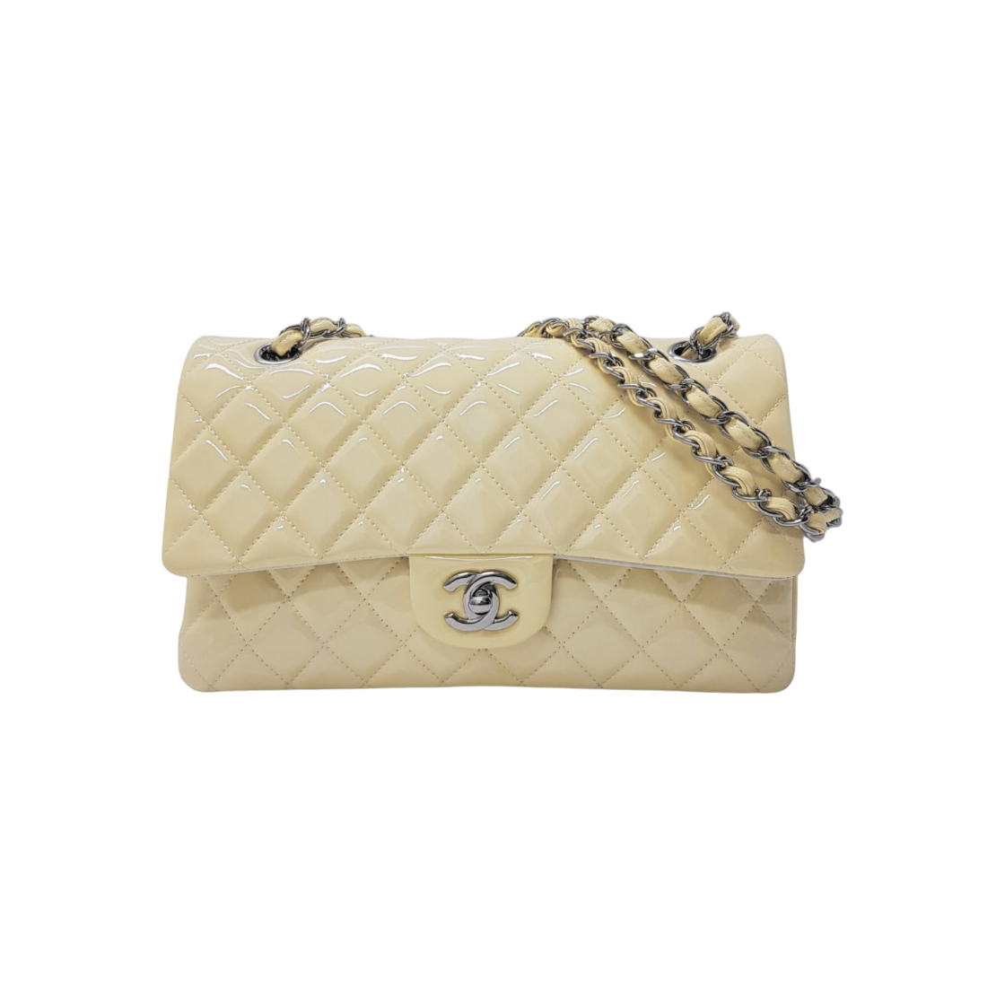 샤넬 A01112 아이보리 페이던트 클래식 미듐 은장 체인 숄더백