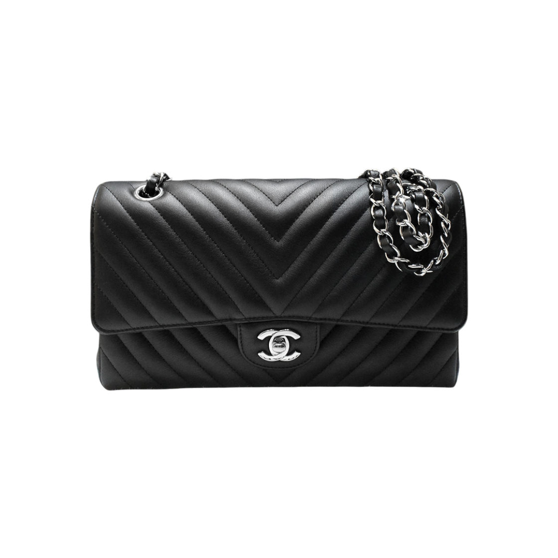 샤넬 A01112 블랙 램스킨 클래식 미듐 은장체인 숄더백 aa43865