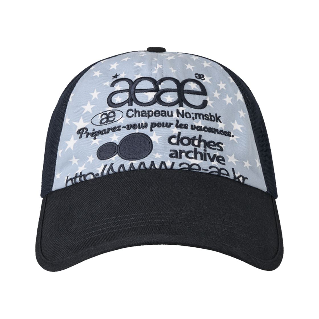 [예약 배송] 에이이에이이 웹 로고 스타 메쉬 캡 스카이블루