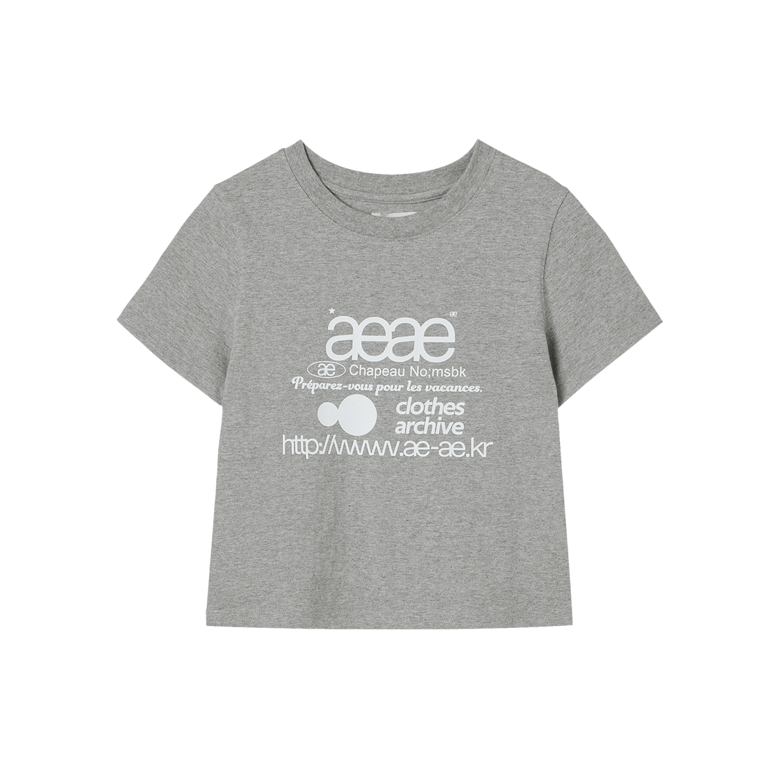 에이이에이이 웹 로고 크롭 티셔츠 멜란지 그레이