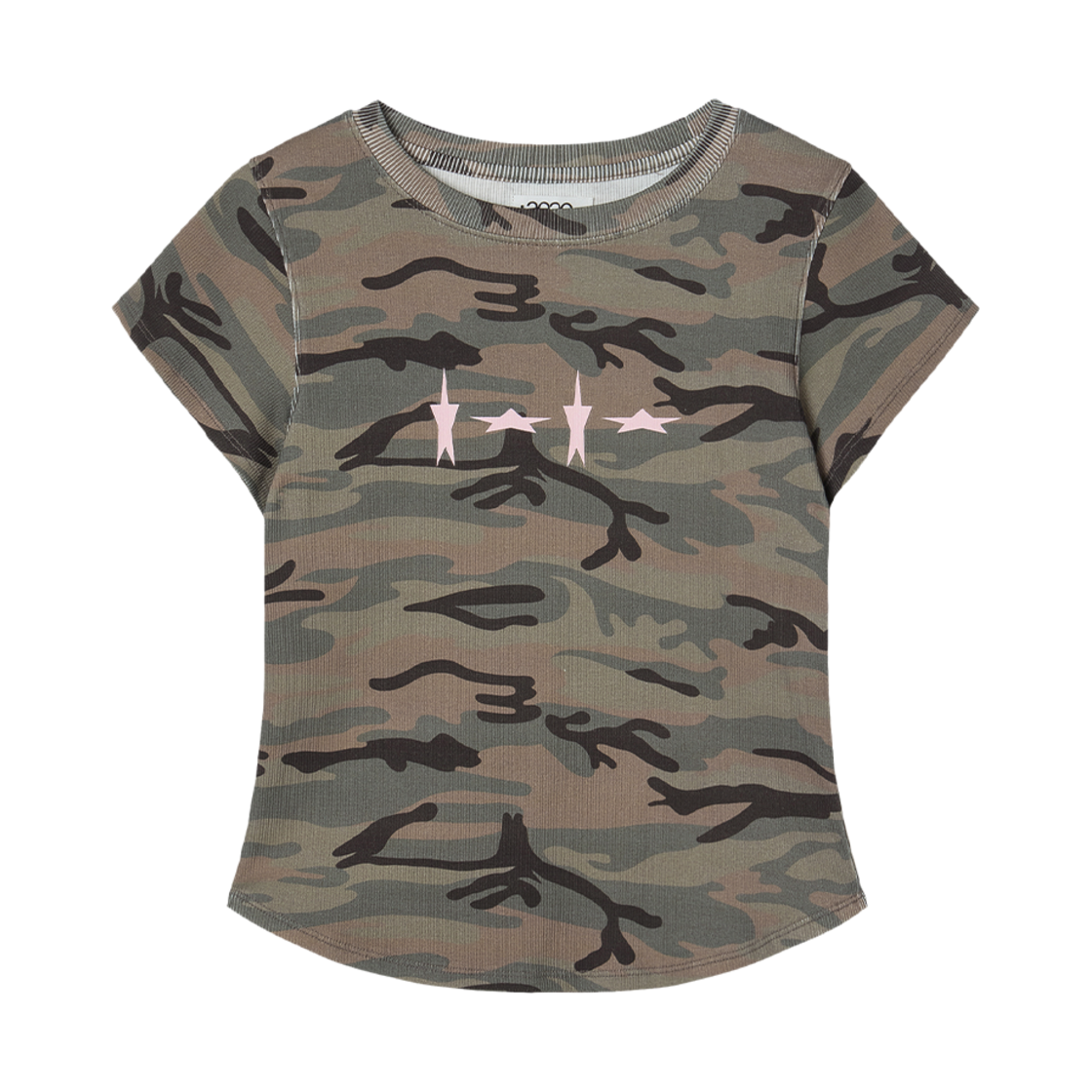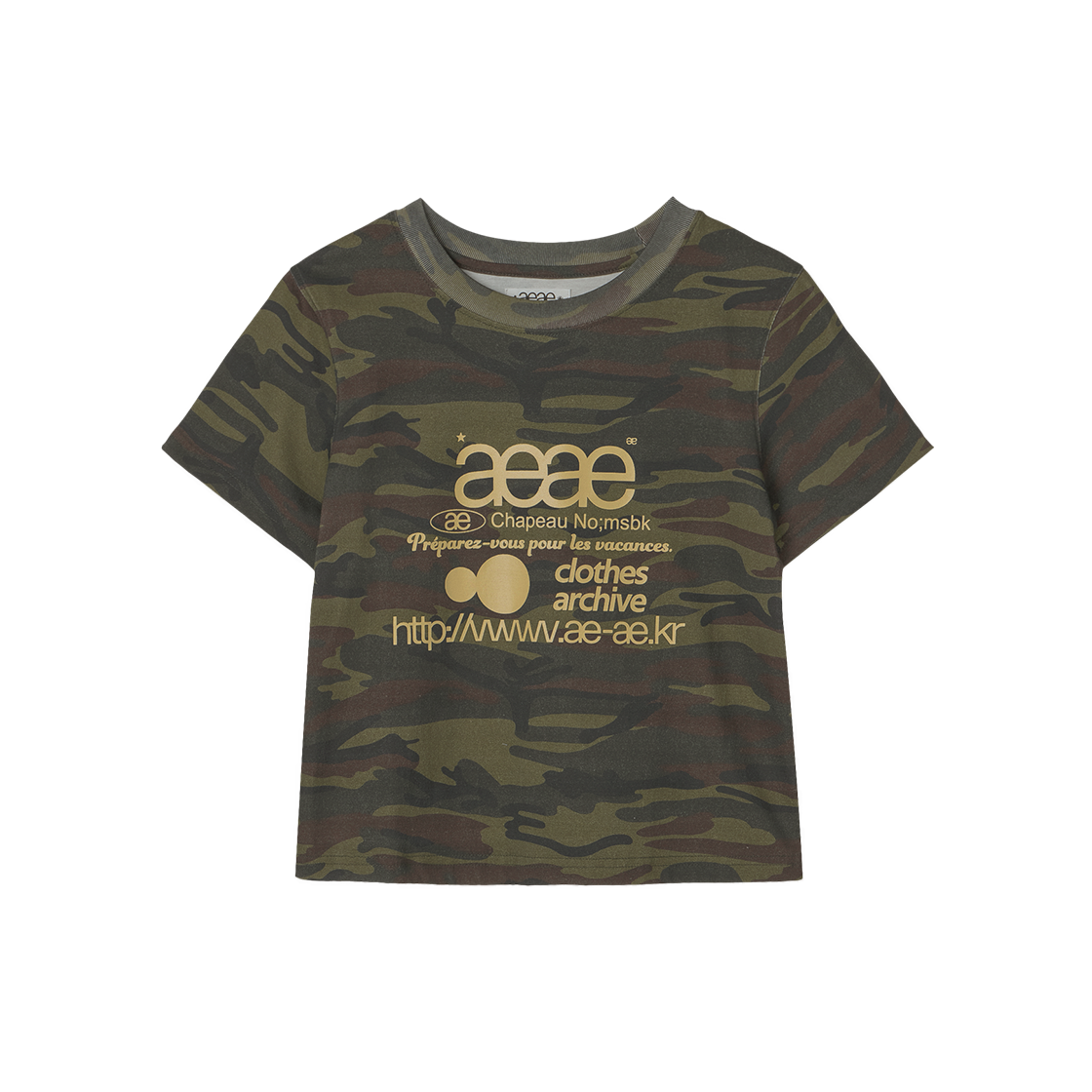 에이이에이이 웹 로고 크롭 티셔츠 카모