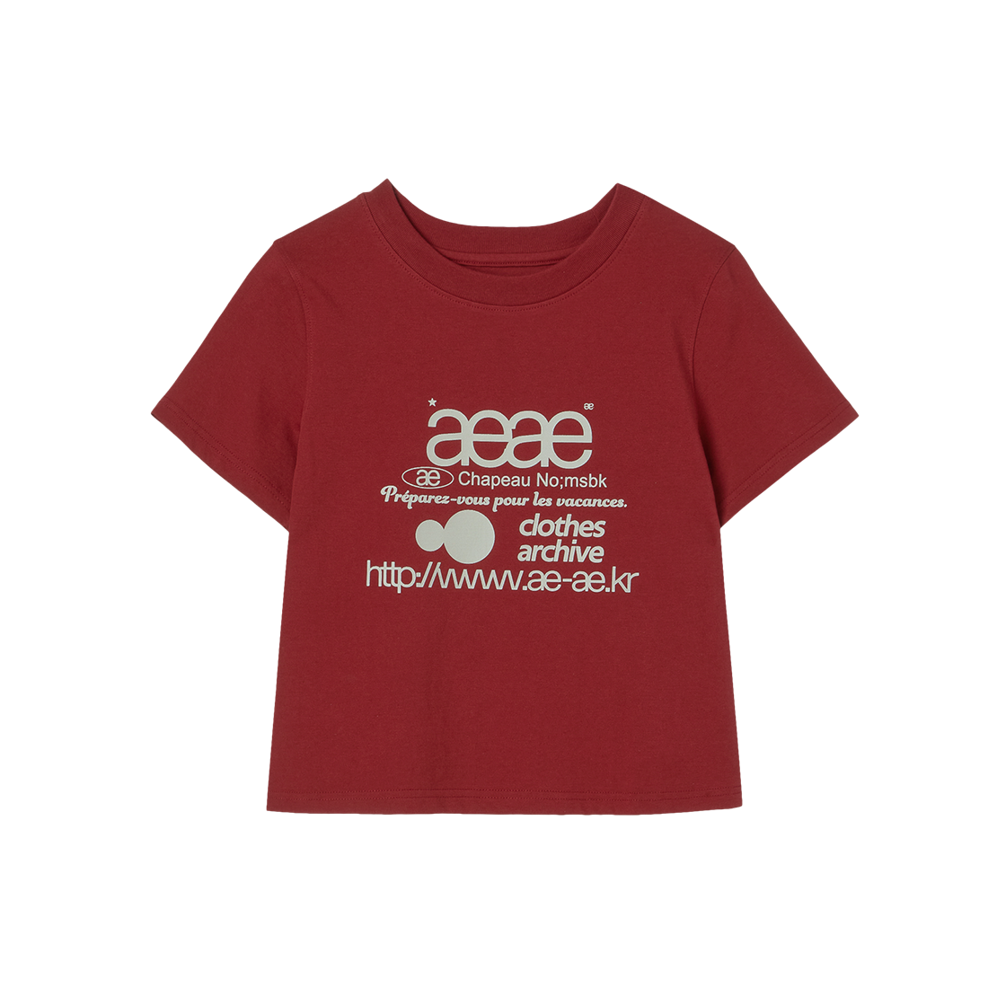 에이이에이이 웹 로고 크롭 티셔츠 버건디