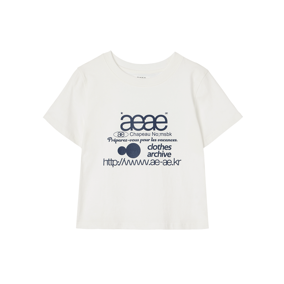 [예약 배송] 에이이에이이 웹 로고 크롭 티셔츠 화이트 & 블루